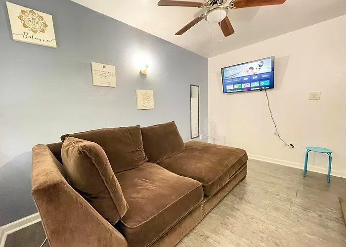 The 9-room Mangosteen Apartment New Orleans offers easy entry to such city sights as Chalmette National Historical Park, situated merely a 6-minute walk away. Wi-Fi is provided for both business and leisure activities.
